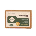 RUVA’s Charcoal Detox Ayurvedic Soap is a 100g handcrafted bar made with traditional amalaki wood charcoal — slow-burnt and sacredly ground — blended with soot-purified sesame taila and wild herbal infusions. Designed to pull out city-stress, oil-clog, and dullness from the skin — without stripping its balance or softness.